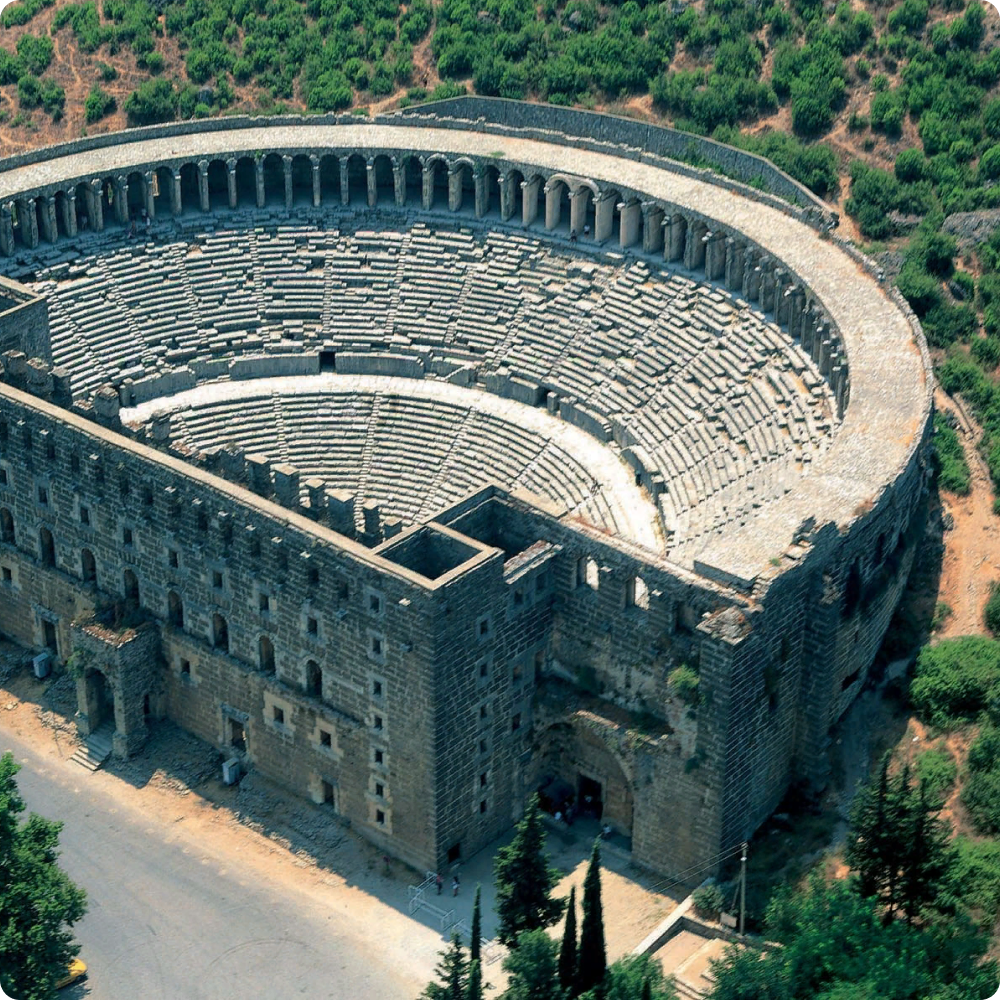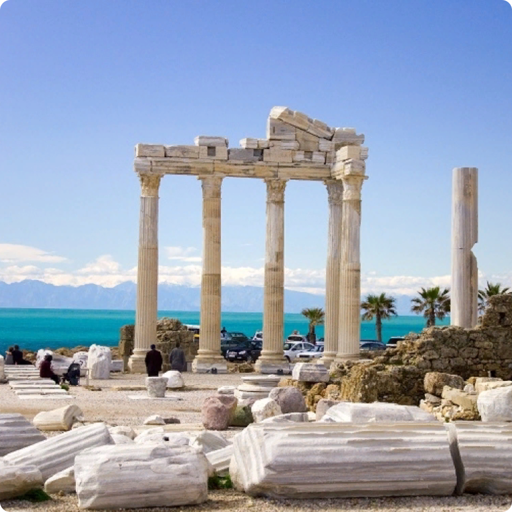 Город основан греческими колонистами во II веке до н. э., а в 67 году до н. э. Марк Антоний подарил Аланию Клеопатре. В городе сохранилась целая куча строений из античного Мира!
